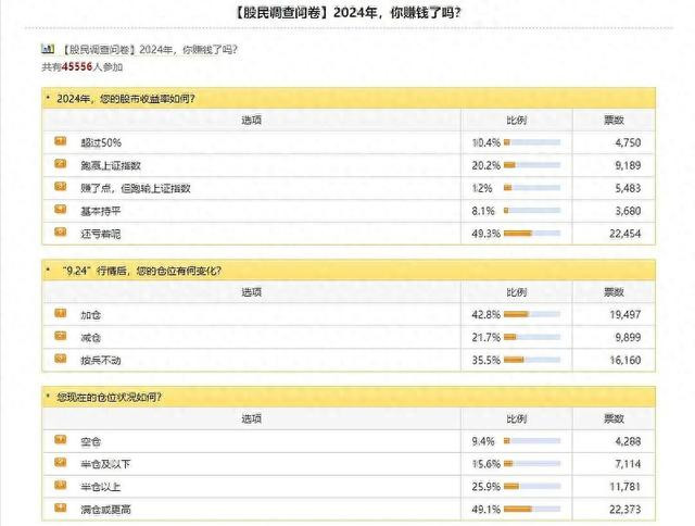 | 2024年就剩临了2个交游日云开体育,不知谈大家本年赢利了莫得。 有平台作念了一个走访,从参与问卷的45000多东谈主的问卷效力来看,选拔还亏着的逾越了49%!