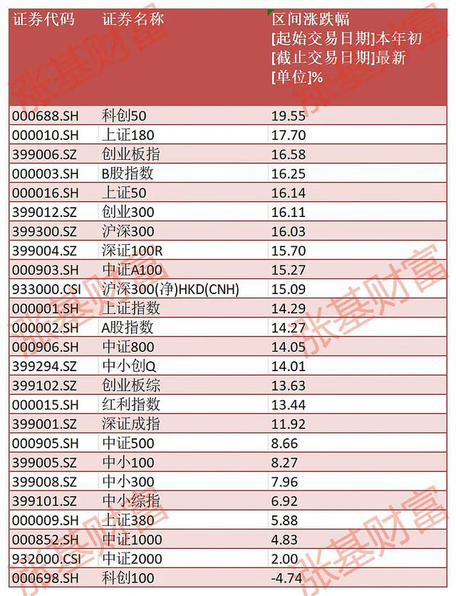 A股中枢指数内部,除了科创100指数小幅下落,其他的指数都是涨的。