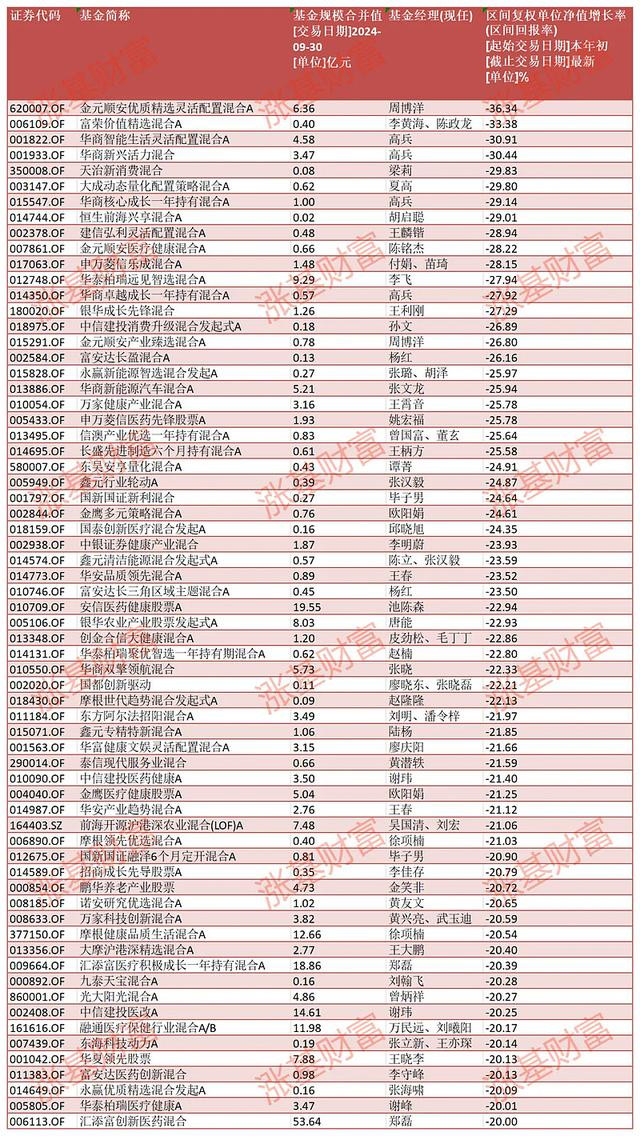 就医药生物、农林牧渔、食物饮料、好意思容照看这四个板块跌幅逾越了5%,跌得最多的医药生物跌幅为12.33%! 从这些指数和行业进展来看,本年不应该大亏的,大亏了,信服是作念错了不少事情。 然而,老K看了一下本年基金的举座进展,指数基金我们就不说了,一些主动权利类基金果然亏欠逾越了30%。 确切是让东谈主难以意会! 以下是本年亏欠逾越20%的主动权利类基金名单,其中金元顺安优质精选、富荣价值精选、华商智能生涯、华商新兴活力跌幅逾越了30%!